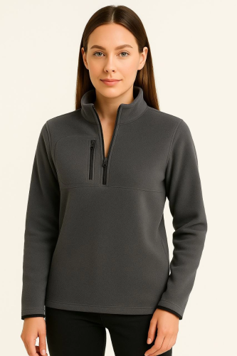 Polar Kazak Dik Yaka Yarım Fermuarlı Fermuarlı Göğüs Cepli Siyah Biyeli Kışlık Rahat Regular Fit Günlük Model Füme