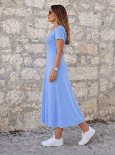 Kadın kısa kollu yuvarlak yakalı yakası renkli kiloş midi viskon elbise