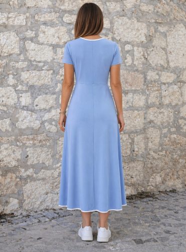 • Kadın kısa kollu yuvarlak yakalı yakası renkli kiloş midi viskon elbise