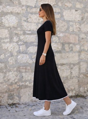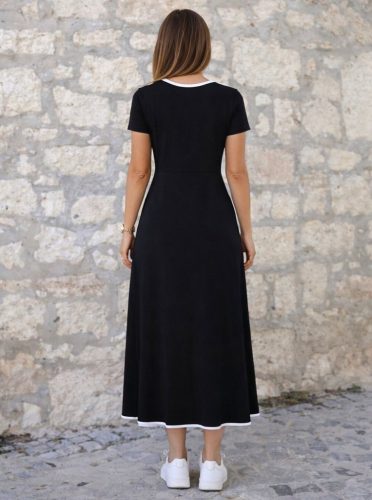 • Kadın kısa kollu yuvarlak yakalı yakası renkli kiloş midi viskon elbise