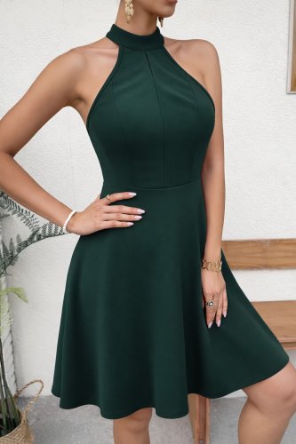 • Kadın omuzlardan açık balıkçı yaka arkadan dantel detaylı kısa ithal krep elbise