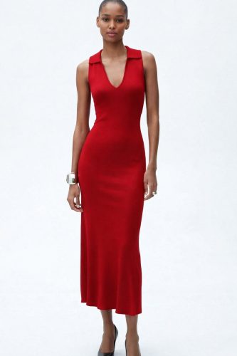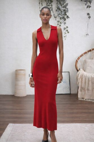 • Kadın kolsuz v yakalı uzun triko elbise